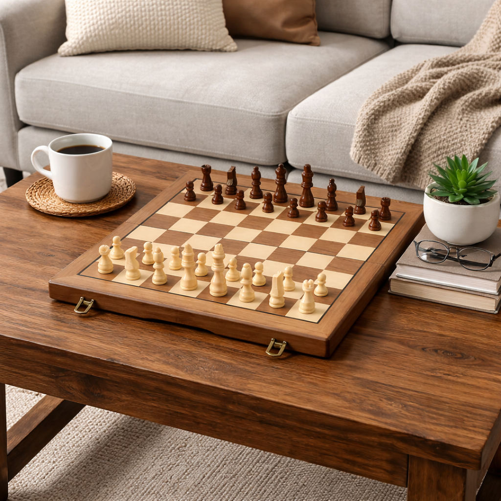 Transformez chaque partie en un véritable moment de plaisir avec ce jeu d’échecs en bois au design soigné.